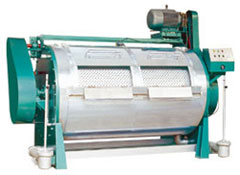 工業洗衣機:直屬洗滌設備系列按容量大小分為:30kg、50kg、70kg、200kg、250kg、300kg等系列。該洗滌設備是滾筒型,內、外殼采用優質不銹鋼制作而成,平整光滑、耐腐蝕、不損傷織物。該機由內筒、外筒、電機、支撐總成、傳動總成、電器總成組成。 結構合理、安裝使用方便。工作原理:由頂置電機、三角膠帶、帶動傳動總成,使內筒作正反轉運轉, 通過織物與織物、織物與內筒壁的相互摩擦,達到洗滌效果。機器內置過熱、過載裝置、定時裝置、正反轉控制裝置。外筒門設有安全裝置,若運行中門被打開,機器立即停止運轉,確保該洗滌設備、操作人員的安全。